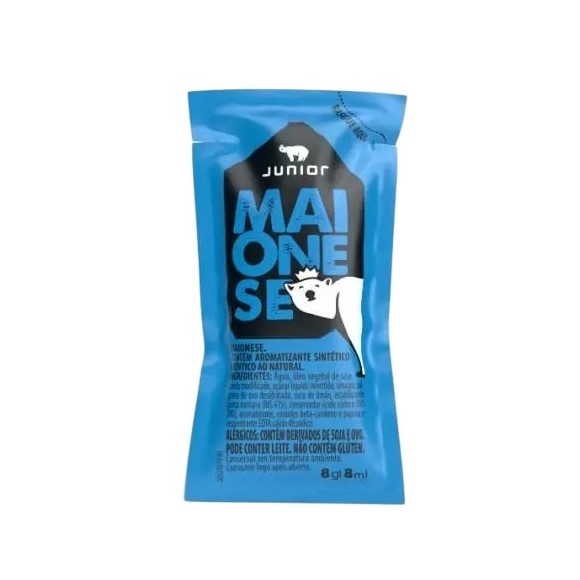 Maionese Sachet 7g JuniorA praticidade em porção individual! Armazenamento:Antes de aberto: Mantenha em local fresco, seco e ao abrigo da luz solar direta. Após aberto: Consuma imediatamente. Por ser uma porção monodose, o sachê não é reciclável após abertura.Validade:12 meses a partir da data de fabricação (indicada na embalagem). Após aberto, descarte as sobras.Dica de Uso: Perfeita para lanches rápidos!Leve na mochila, bolsa ou lancheira para adicionar cremosidade a sanduíches, salgados ou saladas em qualquer lugar. Agite suavemente antes de abrir para homogeneizar a textura.