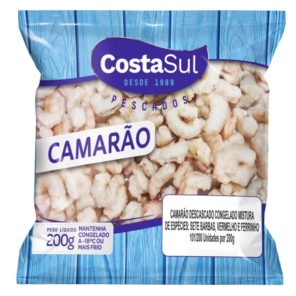 REFEIÇÃO>PEIXES>PEIXES>CAMARAO MISTURA DESCASCADO 200G COSTA SUL CX/20 PC